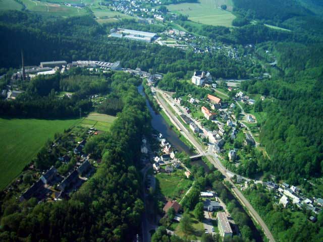 Scharfenstein, fotografiert beim Flug in Großolbersdorf |